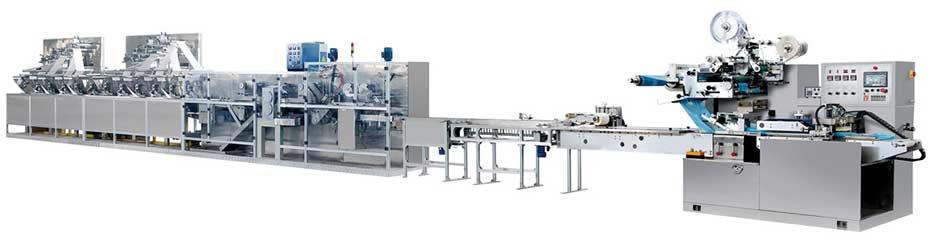 I. The wet wipe machinery can be arranged parallel with or at 180 degrees apart from the packaging machine.